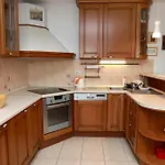 Felszerelt konyhasarok mosogatógéppel és sütővel gondoskodik a kényelmes tartózkodásról.